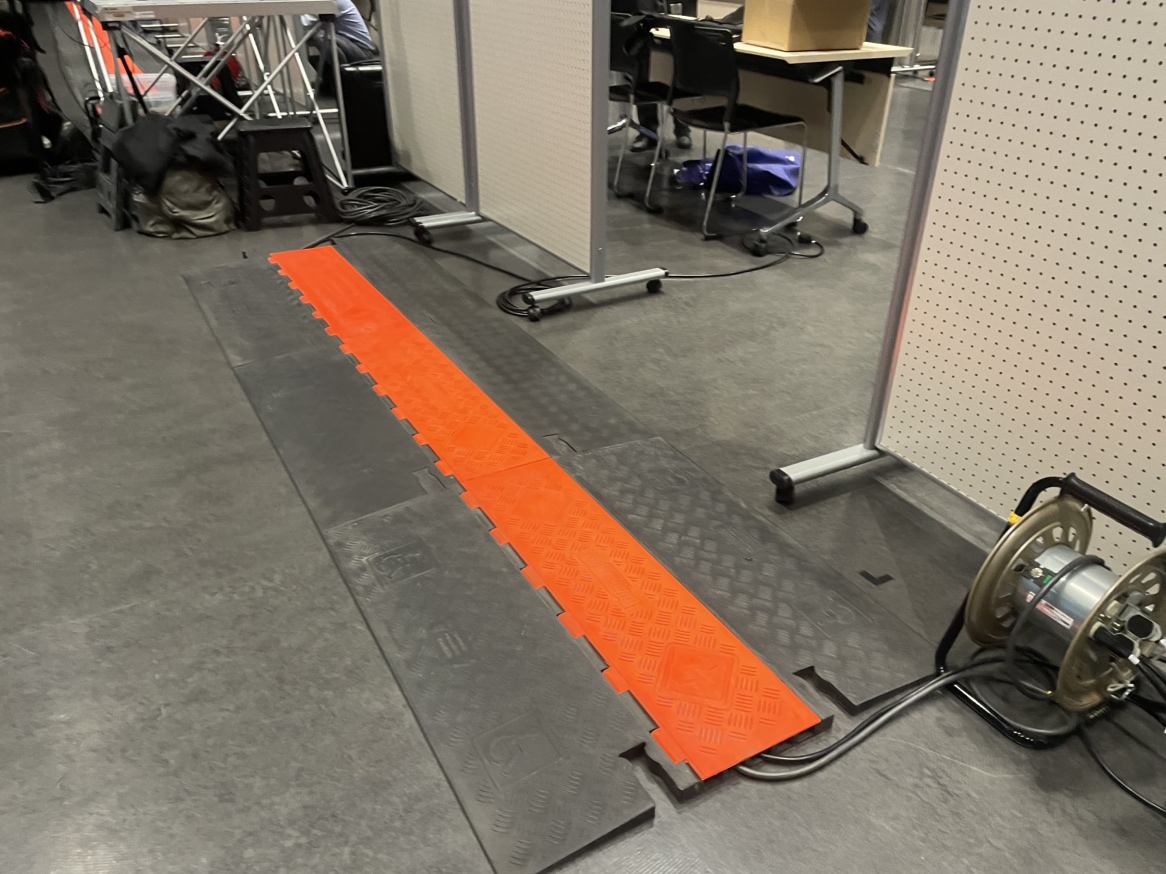 今回は先日レンタルいただいたケーブルプロテクターとあわせて、会場の安全を守るアイテムをご紹介します。