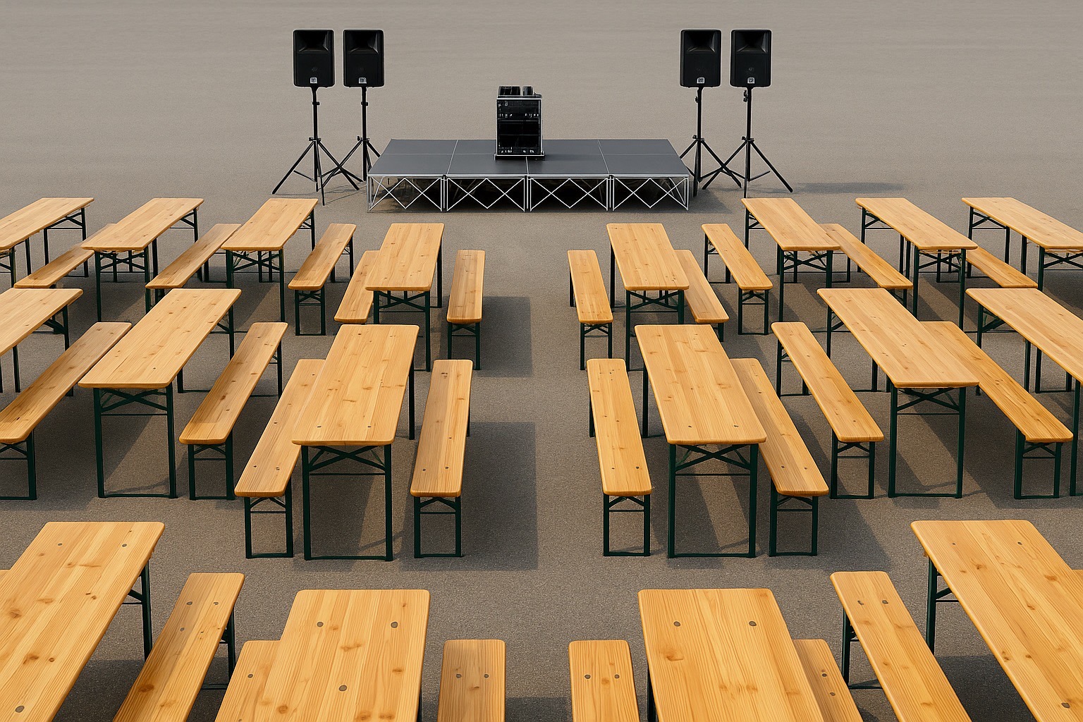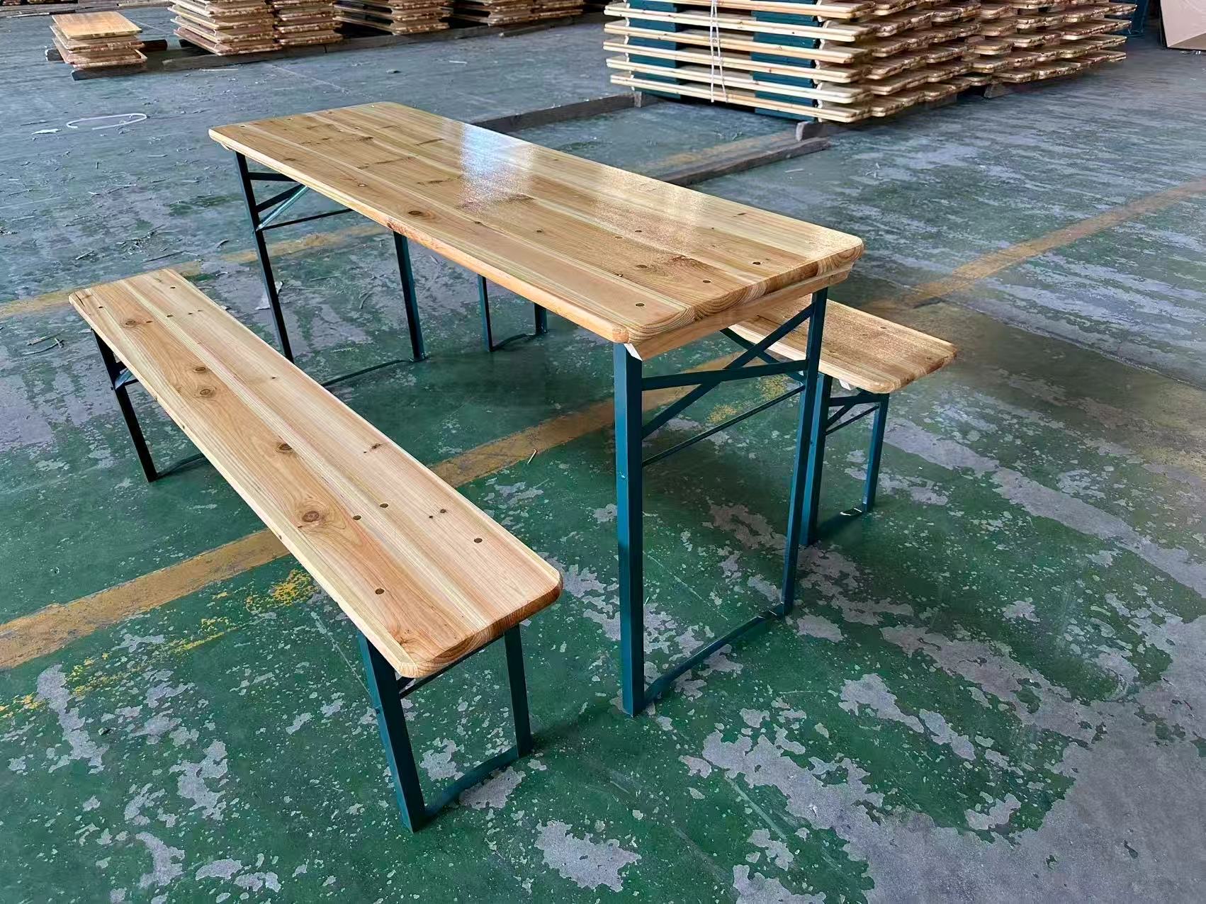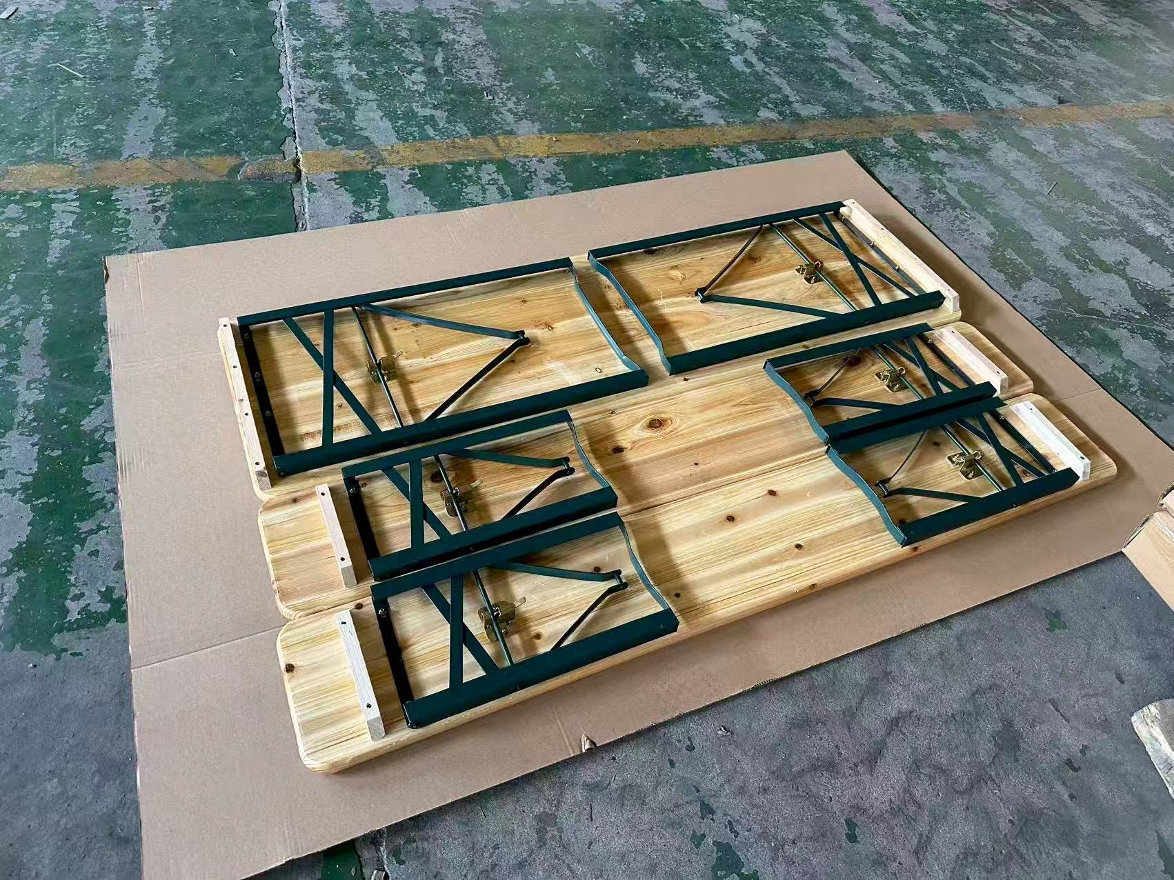 ドイツのオクトーバーフェストをはじめ、各種野外イベントやパーティーシーンで活躍する、折りたたみ式のテーブル&ベンチセットです。