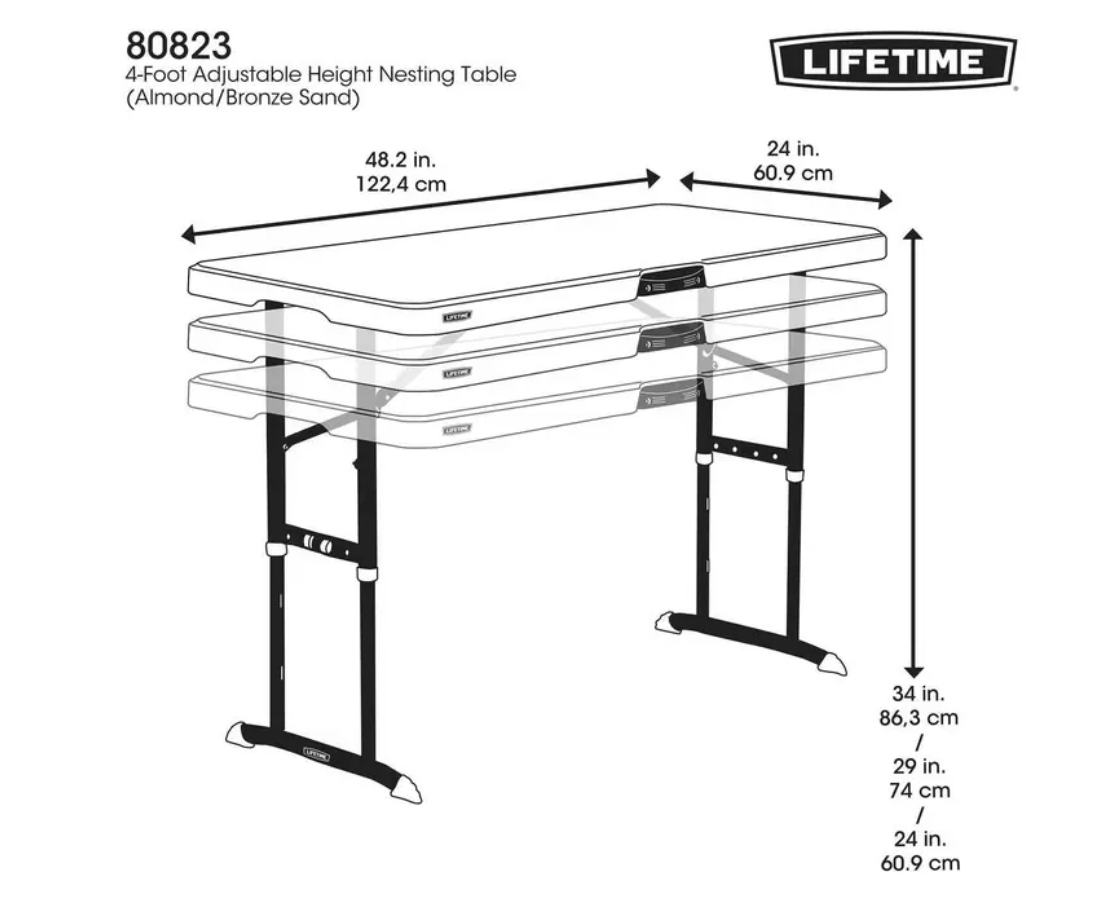 LIFETIMEの4フィートの3段階に調整可能なネスティングテーブルは、家中のさまざまなニーズにぴったりのテーブルです。