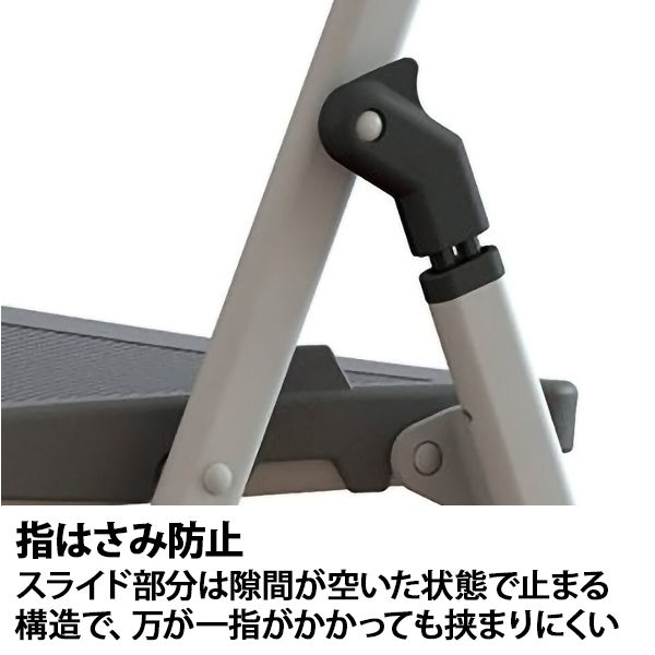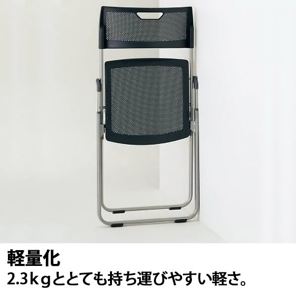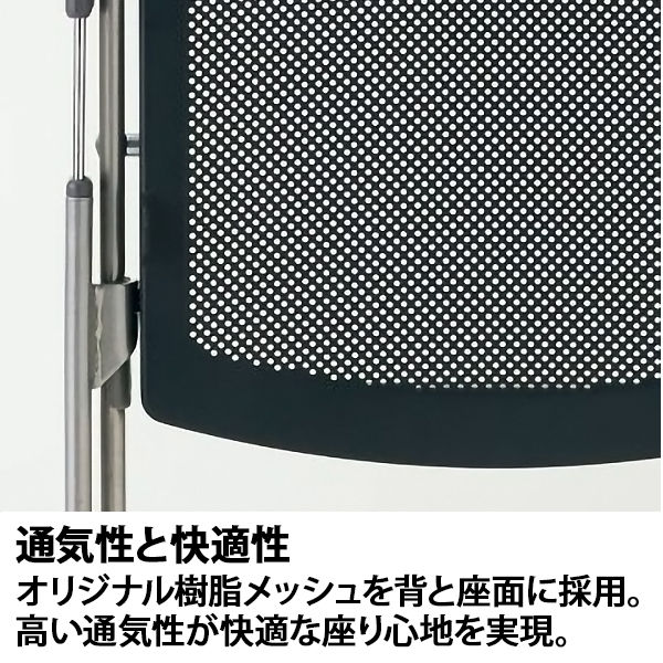 背・座は樹脂メッシュ、アルミフレームの超軽量チェアです。指はさみを防ぐスライドヒンジ仕様なので安心です。