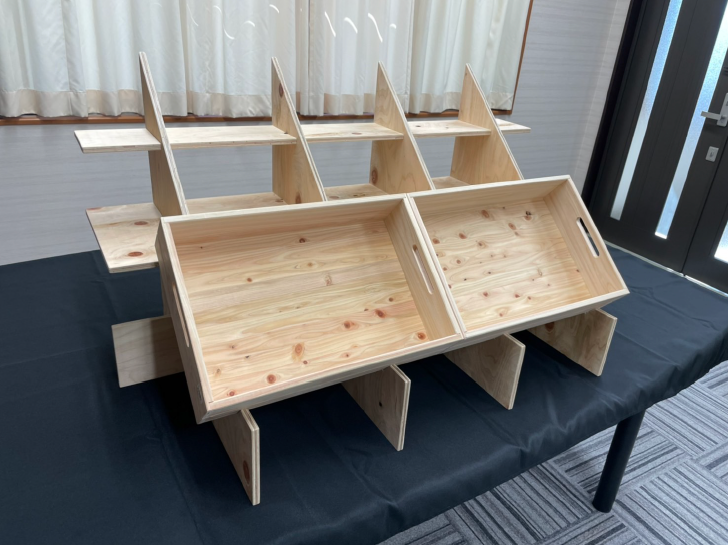 ◎ボックスを傾けて陳列できる、簡単組み立ての傾斜台