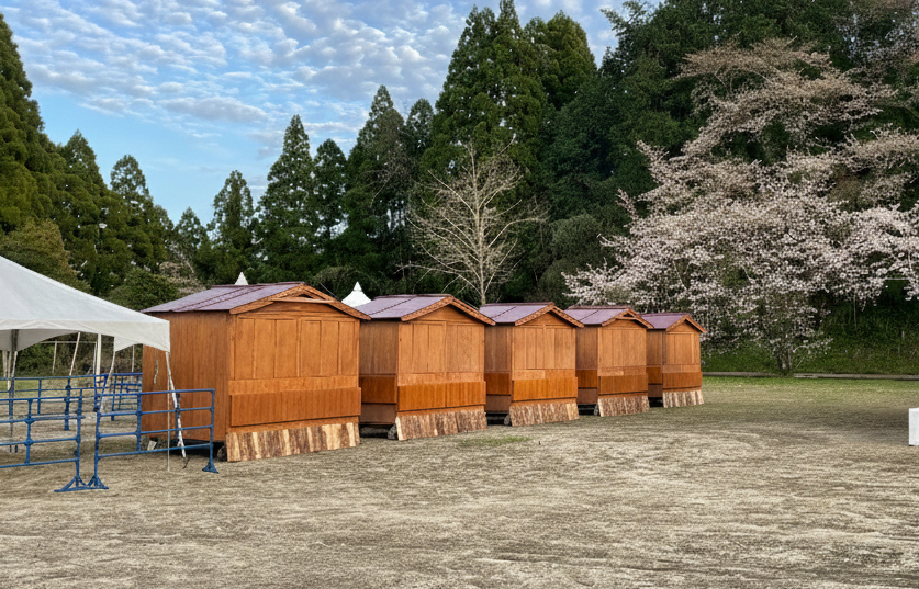 ◎弊社オリジナル設計による、木のぬくもりを活かした移動式ヒュッテ。